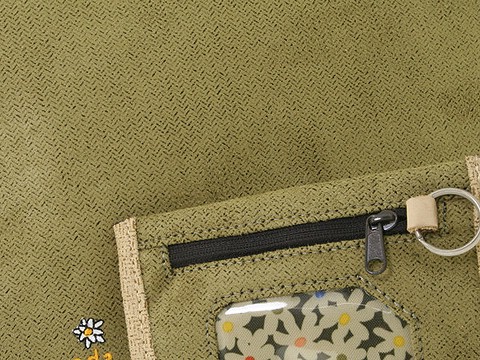 Un sac amusant et fonctionnel du corps croix faite avec un tissu en coton naturel et de versions en suède.