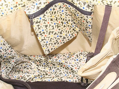 Fun, fleur imprimée garniture intérieure avec une poche zip mur du fond et des poches de glissement multifonctionnel.